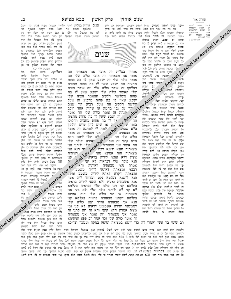 Traité Baba Metsia du Talmud de Babylone, édition de Vilna. Texte intégral. Michna, Gmara, Rachi, Tosfot, Torah Or.